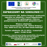 W związku z ograniczoną liczbą uczestników obowiązuje telefoniczna (56 682 03 53) lub mailowa (biuro@lgddolinadrwecy.org.pl) rejestracja na szkolenie.