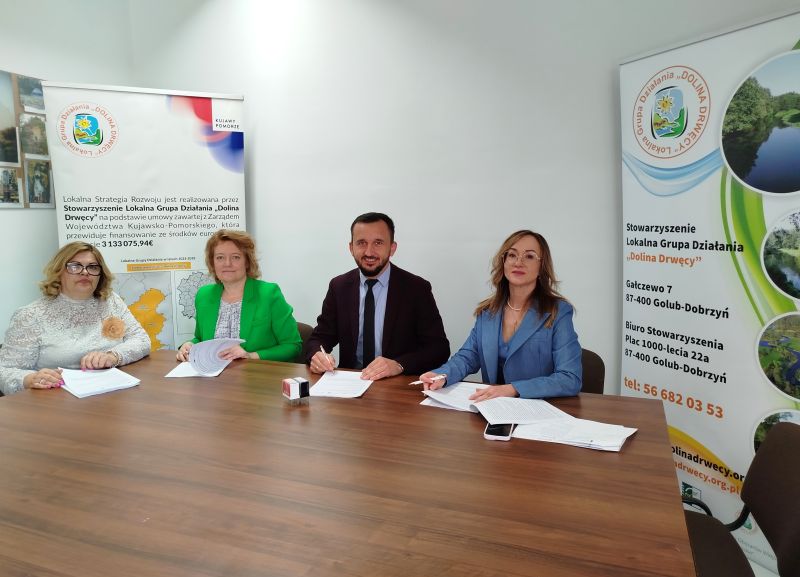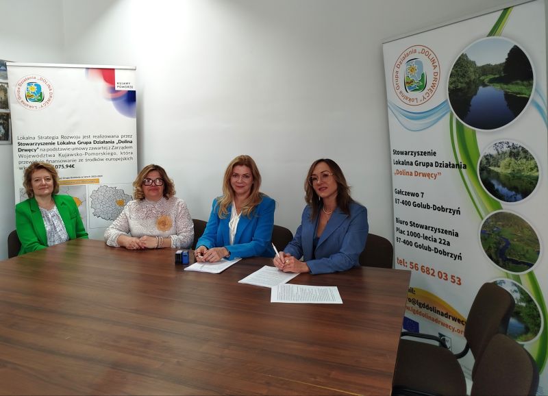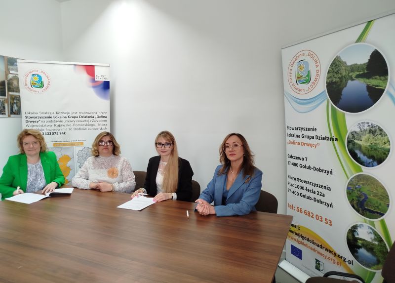 Dnia 27 kwietnia 2026 r. w Biurze Stowarzyszenia Lokalna Grupa Działania "Dolina Drwęcy" podpisano umowy o powierzenie grantu z naboru wniosków nr 2/2025/G/EFS+ na utworzenie klubów seniora oraz z naboru nr 3/2025/G/EFS+ na utworzenie klubów młodzieżowych.