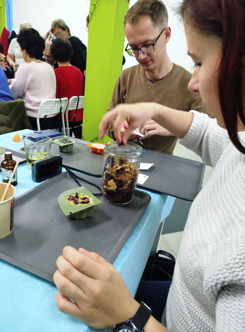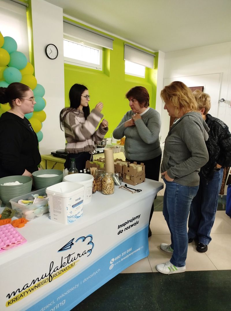 Podczas wizyty w Manufakturze Kreatywnego Rozwoju zaprezentowano specyfikę działalności organizacji. Uczestnicy wzięli także udział w warsztatach, podczas których wykonali naturalne świece sojowe, mydełka zapachowe oraz naturalne sole do kąpieli, które później zapakowali w pudełka prezentowe.