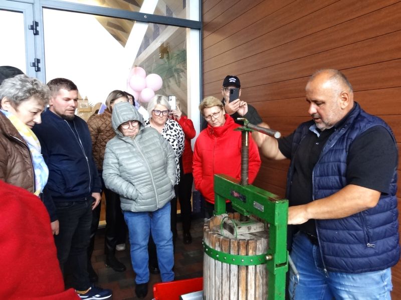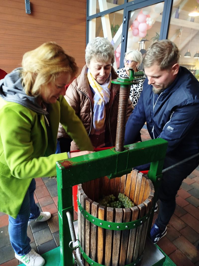 Druga część wizyty poświęcona była odwiedzinom w lokalnej winnicy w Kurkocinie, gdzie właściciele zaprezentowali specyfikę swojej działalności, zdradzili tajniki produkcji tutejszych win oraz przeprowadzili warsztat robienia soku z winogron. Uczestnicy zjedli wspólny posiłek i skosztowali własnoręcznie zrobionego soku.